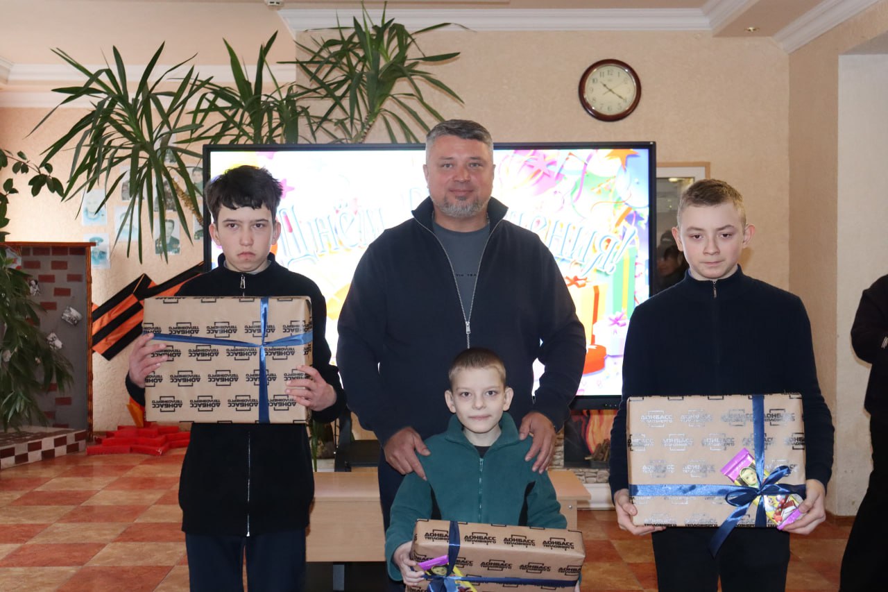 Навещать подшефное учреждение и поздравлять своих подопечных с Днем рождения для руководителя нашего предприятия стало доброй традицией. 8-летнему Кириллу, 14-летним Никите, Игорю и Татьяне в присутствии других воспитанников школы Сергей Полхов вручил подарки от ГУП ДНР «Донбасстеплоэнерго».